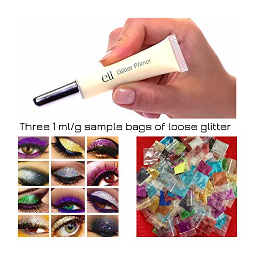 e.l.f. Glitter Primer Plus 3 Colors Loose Glitter Bags (1/2 gram each) for Eyes & Face | Eye Shadow Cosmetics Makeup | Perfect for Parties, New Year's...