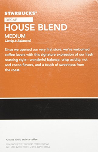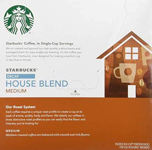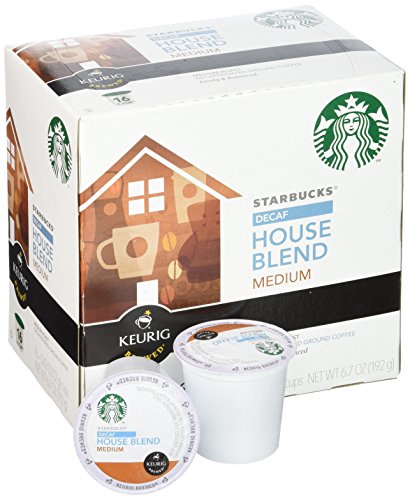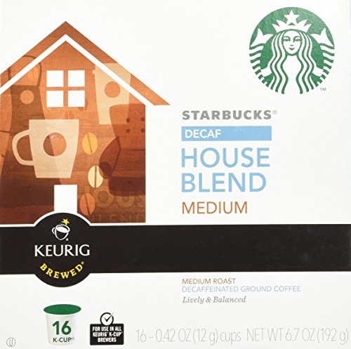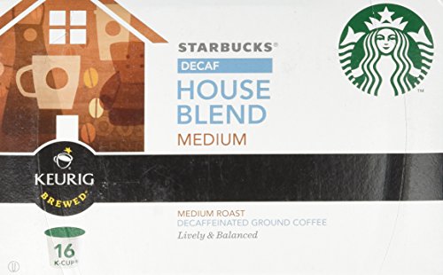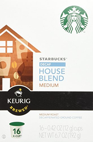 STARBUCKS COFFEE * DECAFFEINATED HOUSE BLEND * MEDIUM, 16 K-CUPS FOR KEURIG BREWERS