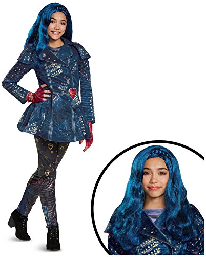 -. Feature : Return to Auradon and the Isle of the Lost in this Disney's Descendants 2: Evie Deluxe Isle Look Child Costume Kit! / This costume includes (1) jacket with attached capelet, (1) top, (1) pair of leggings, (1) pair of fingerless gloves, and (1) wig. NOTE: Does not include boots. / Complete your look with other Descendants accessories, masks, wigs and costume kits! / Perfect for Halloween, Trick or Treating, costume parties, cosplay or dress up, and Descendants theme parties! / This is an officially licensed Disney costume!