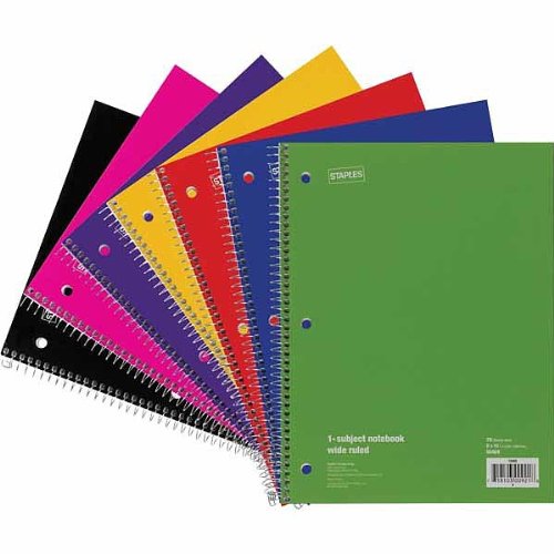 Staples 1 Subject Spiral Notebook, Wide Rule, Assorted Colors (Pack of 10)