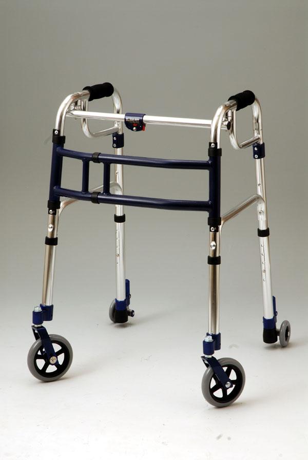 | 歩行器を前方に送り出す時、車輪付なので歩行器を持ち上げることなく楽に移動できます。スライドロックが簡単に外れないように、安全ロックが付いています。ご使用者の体格・廊下やお部屋に合ったサイズに調節ができ、体重が掛かっても手が痛くなりにくい、EVA発泡を採用しています。古くなったり劣化したグリップの交換も簡単。コンパクトに折り畳むことができるので、車や電車になどに持ち込んでお出かけすることができます。 |