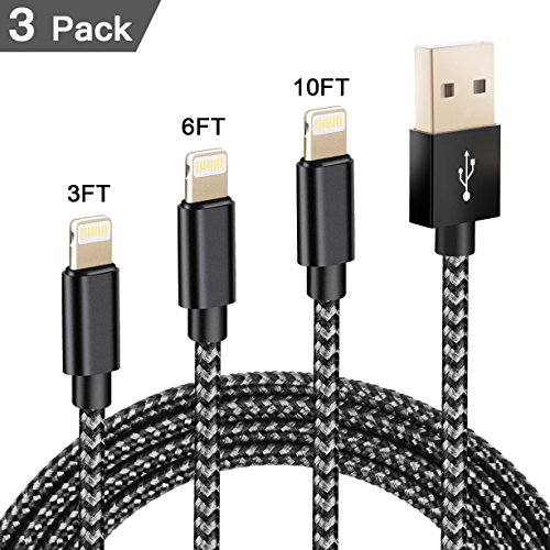 MRNKI iPhone Charger, 3Pack 3FT 6FT 10FT USB to Lightning Cable for iPhone, iPad, iPod Series - Graphite