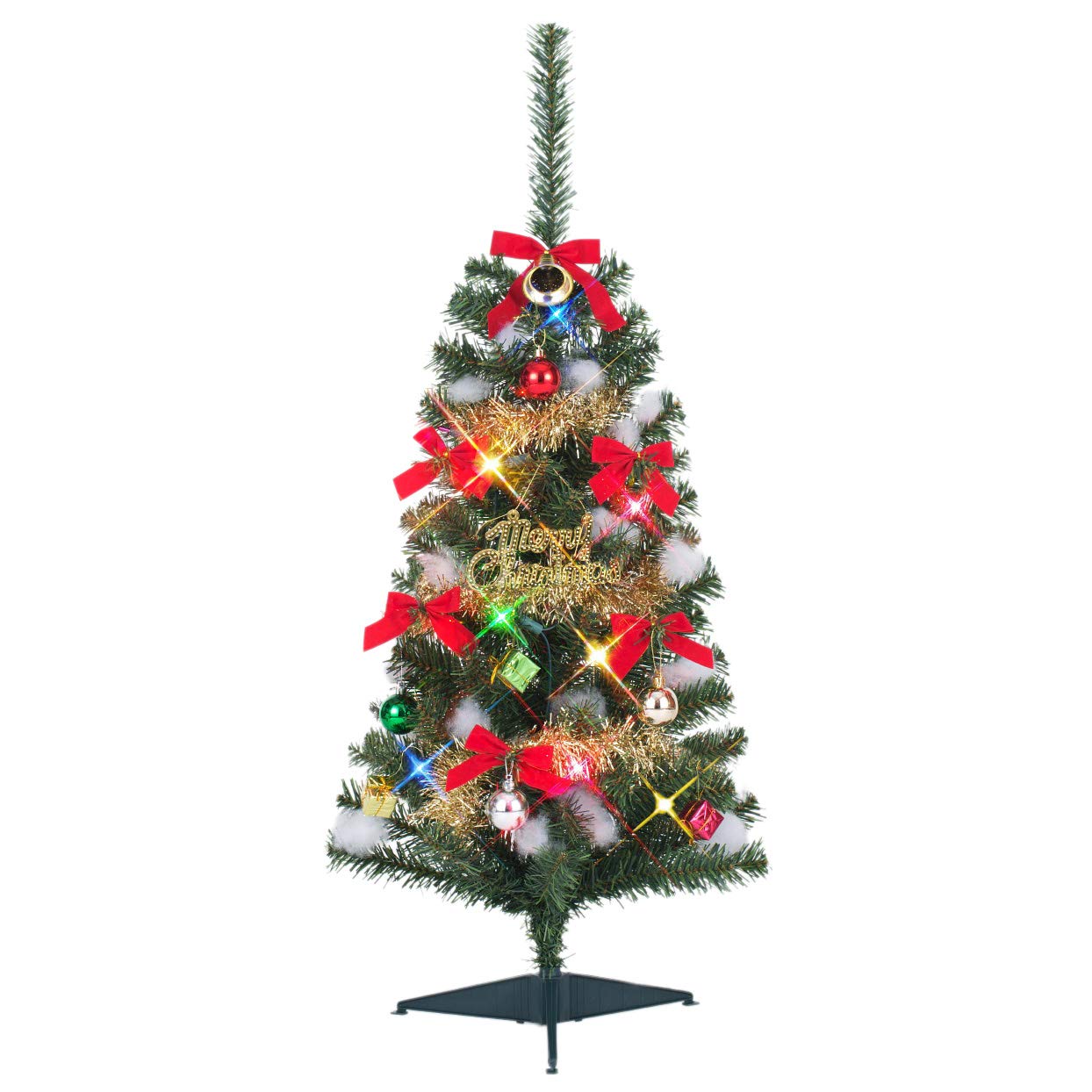 サイズ:90 ツリーとオーナメント、ライトがセットになった、お手軽・お買い得セットツリー。 一般的な分割型クリスマスツリーとは大きく違って、こちらのクリスマスツリーは分割数を増やすことで超コンパクトに収納できるようになりました!! ■商品詳細 ツリーサイズ:90cm/直径 約40cm ※ツリーの組立、オーナメントの飾付は、ご自身でお願いします ツリースタンド/土台:プラスチック組立/直径 約cm 使用場所:屋内用 ※屋外でのご使用不可 付属品(オーナメント):トップリボン×1 リボン×4 モール×1 MCプレート×1 プラボール×4 ギフトボックス×3 雪綿×1 ライト仕様:ペッパー 赤 黄 緑 8球 / 点滅 ライト電源:AC コンセント式 納品時(収納)サイズ:約 44×13.5×13.5cm