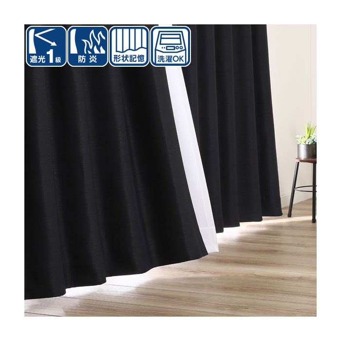 Rakuten 차광1급차열방불길일본제 드랩(장식주름) 커튼 100×110×2 매들어감 블랙(4314) 우송료 유료현관 앞까지 납품