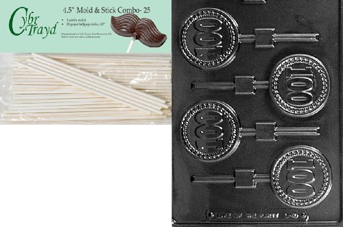 Cybrtrayd 45St25-L040 100 Lolly Letters and Numbers Chocolate Candy Mold with 25-Pack 4.5-Inch Lollipop Sticks