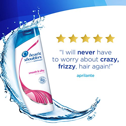 -. Feature : 24 hour frizz control with hair smoothing moisturizers / #1 Dermatologist recommended dandruff brand (1) / Clinically tested. 100% Flake Free (2) Guaranteed (3). / Locks in scalp moisture 75% better than moisturizing shampoo alone (4). / Gentle and pH balanced for daily use on normal to dry hair, even on color or chemically treated hair / Formulated with moisturizers, Smooth & Silky Shampoo helps soften and restore dry, frizzy hair to a silky smooth look / Formulated with Head & Shoulders NEW Fresh Scent Technology featuring enhanced fragrance notes for an improved in-shower scent experience / Frizz control starts at the scalp to smooth each strand / Gentle and pH balanced for everyday use, even for color or chemically treated hair / Dandruff shampoo that keeps hair clean, beautiful and 100% flake free (visible flakes; with regular use)