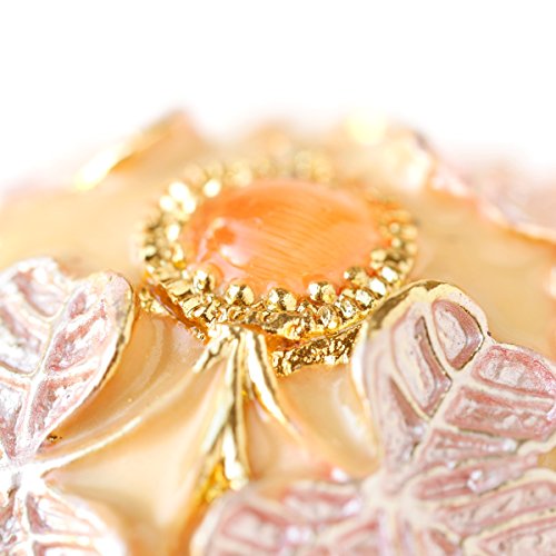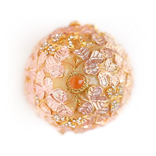 Hand-Painted Vintage Style Faberge Egg with Rich Enamel and Sparkling Rhinestones Jewelry Trinket Box (Golden Pink Leaves)