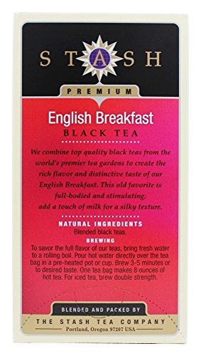 -. Binding : Misc. -. Brand : Stash Tea -. Department : Teas -. EAN : 0077652082289 -. Feature : Premium / 100% natural Ingredients / Kosher parve -. IsAdultProduct : 0 -. Label : Stash Tea -. LegalDisclaimer : Information about this product is provided for informational purposes and is not meant to substitute for the advice provided by your own physician or other medical professional. You should not use the information contained herein for diagnosing or treating a health problem or disease, or prescribing any medication. You should read carefully all product packaging. If you have or suspect that you have a medical problem, promptly contact your health care provider. Information and statements regarding dietary supplements have not been evaluated by the Food and Drug Administration and are not intended to diagnose, treat, cure, or prevent any disease. All discounts are taken from sested retail prices. -. Manufacturer : Stash Tea -. Model : STA-08228 -. MPN : 077652082289 -. PackageQuantity : 1 -. PartNumber : 077652082289 -. ProductGroup : Grocery -. ProductTypeName : GROCERY -. Publisher : Stash Tea -. Size : 20 bag -. Studio : Stash Tea -. Title : Stash Tea - English Breakfast - 6 Units / 20 bag -. UPC : 077652082289