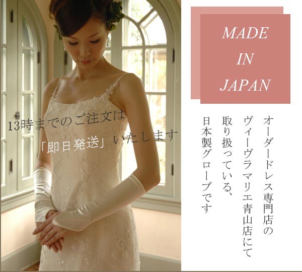 ⇒ 長さ40cm・ベーシックなサテンフィンガーレス [G50] ⇒ 長さ30cm・華麗なレース付きフィンガーレス [G53] ⇒ コーディネートで人気の軽やかベール [V92] |