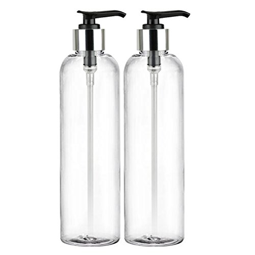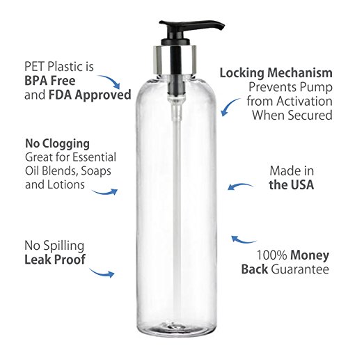 MoYo Natural Labs 8 oz Pump Dispenser, Empty Soap and Lotion Bottles with Locking Cap, BPA Free PET Plastic Containers for Essential Oils/Liquids (2 pack, Clear)