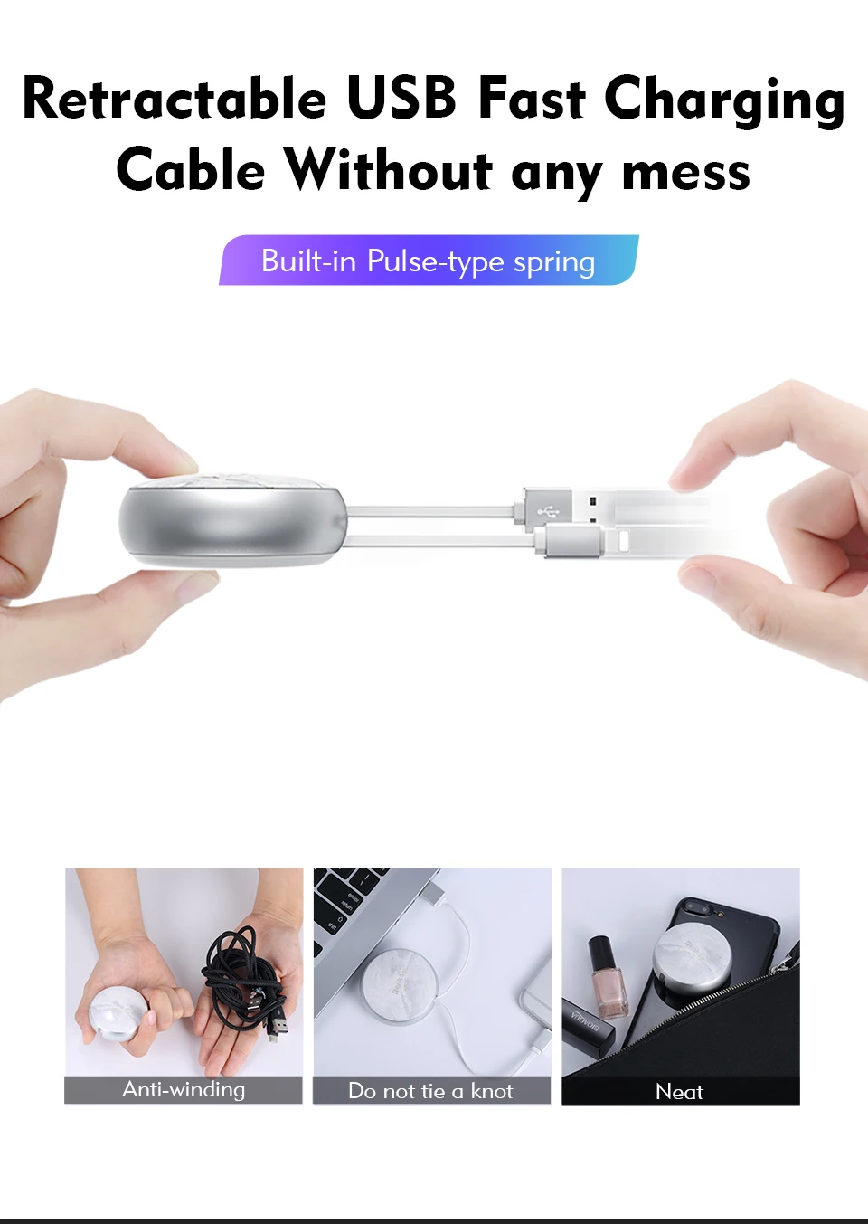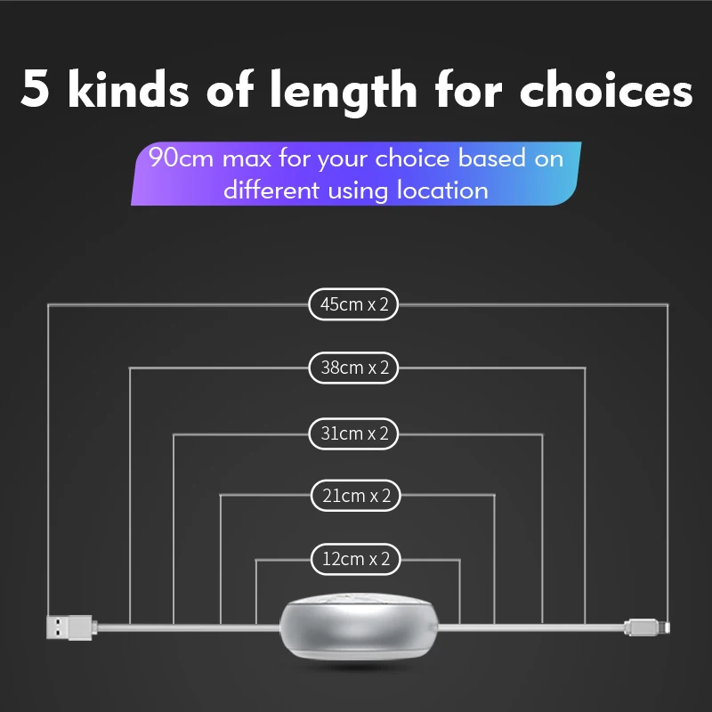 Type:Retractable USB Fast Charging Charger Cable for iPhone iPad iPod