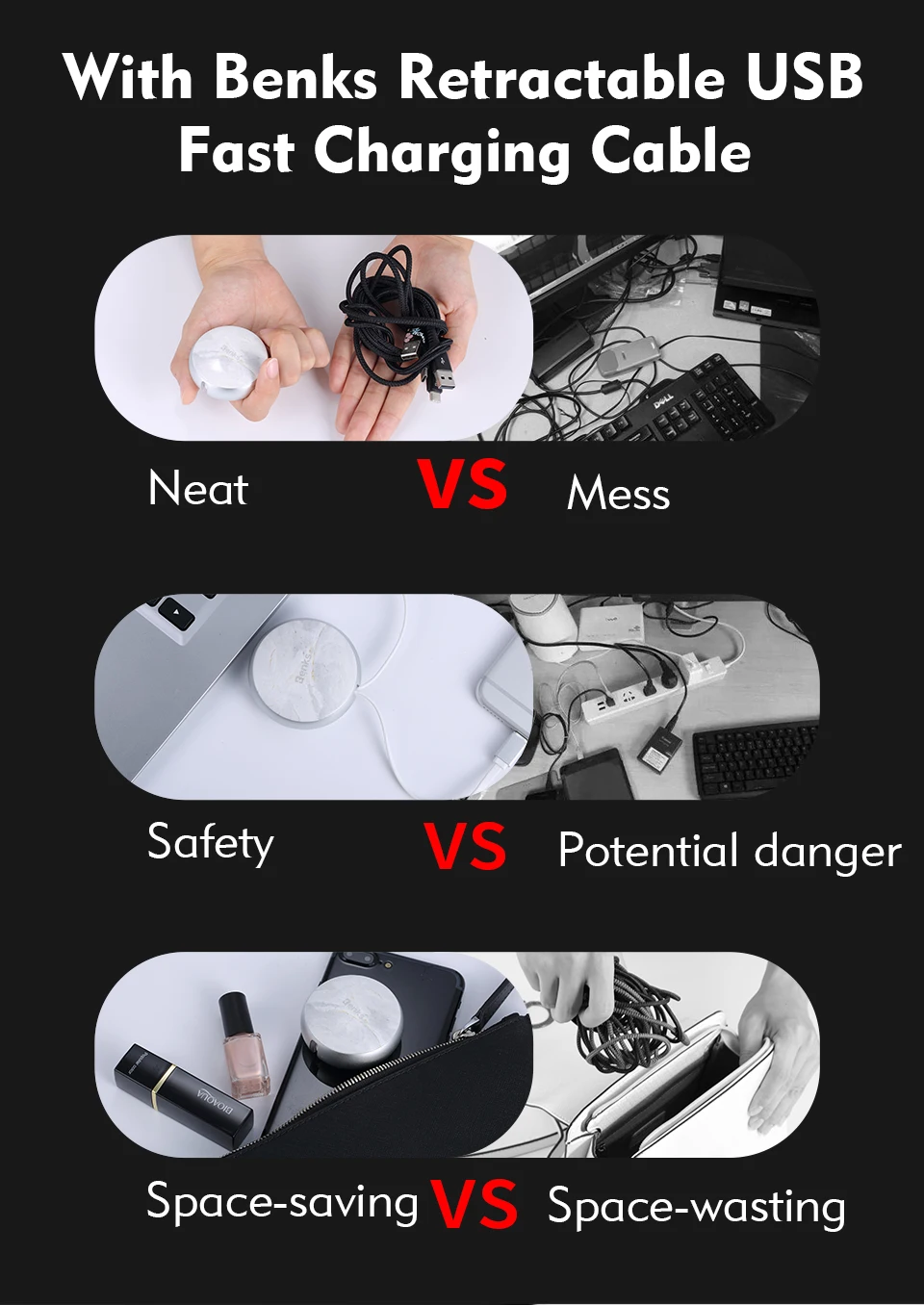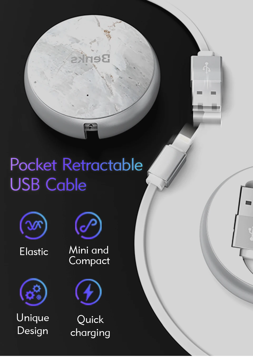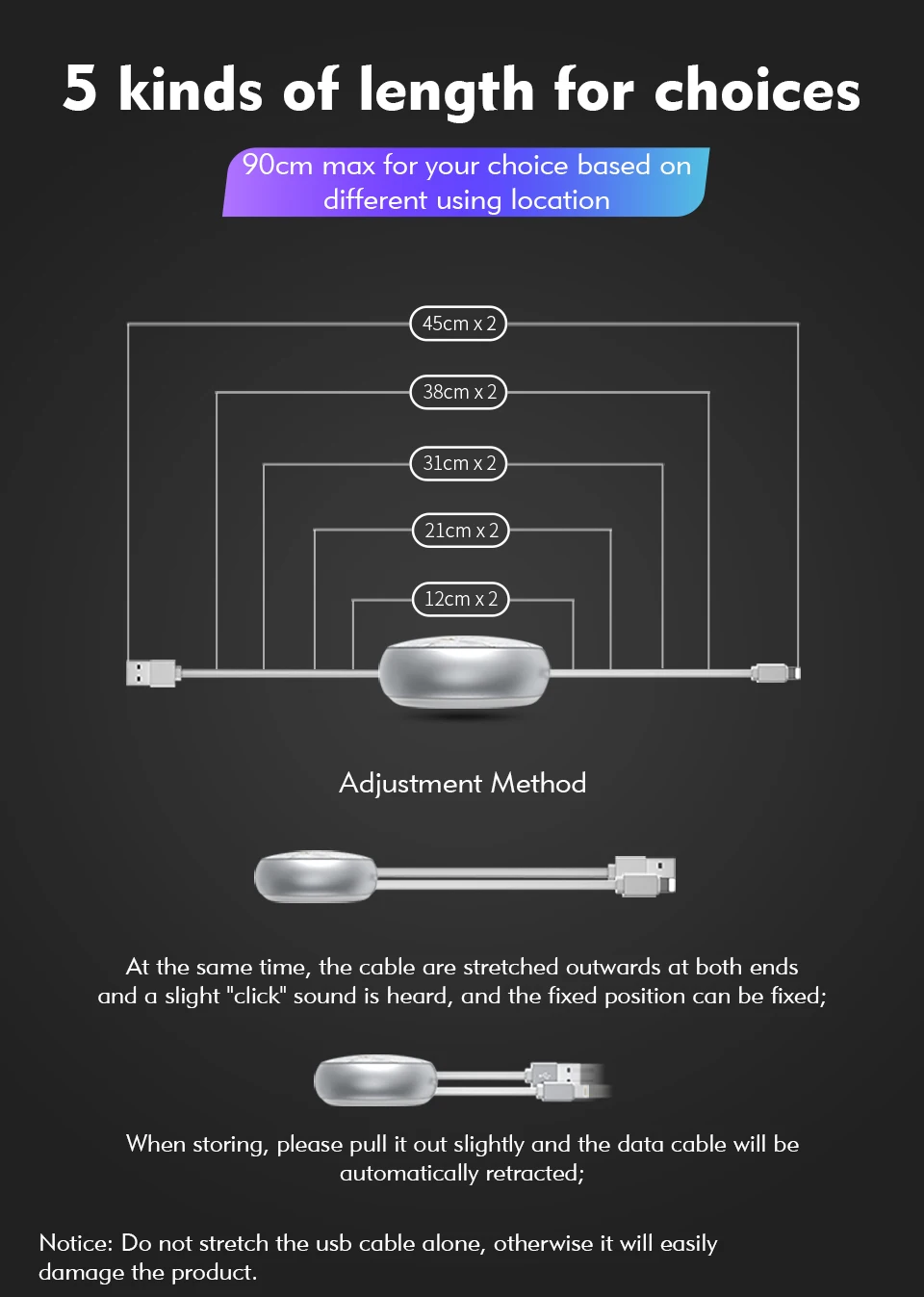 Function 2:Retractable USB Charger Cable For iPhone 6/ 6S/ 6 Plus/ 6S Plus