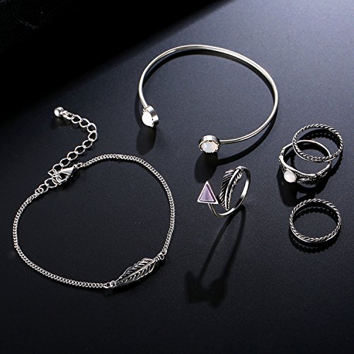 Studio : Gosear Publisher : Gosear Product Description Amazing bracelet and rings set, making you more charming and catch people's eyes Fine workmanship with retro color, quite luxurious and exquisite Match with many apparel, it is also a great gift for yourself or your friends and coworkers Perfect for many occasions: daily wear, anniversary, engagement, party, meeting, dating, wedding, etc. Set includes 4 PCS knuckle rings and 2 bracelets, completely for you to finish a attractive looking Material: alloy Size: Bracelet diameter: 60 mm/2.36 inch Ring diameter: 13-18 mm/0.51-0.71 inch Package: 2 x Bracelet 4 x Rings 0