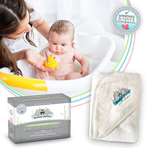 Brooklyn Bamboo Baby Hooded Towel, Soft, Hypoallergenic Thick, Organic, Infant & Toddler Layette & Registry & Gift Basket Sets, Large