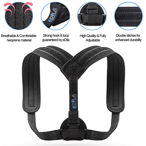 ★ ENJOY IMPROVED RANGE OF MOTION: Being discreet yet highly supportive, eDILA posture corrector shoulder brace can be worn under or over loose clothing. Our posture support is ideal for both men and women working long hours in front of a screen, traveling, driving long distances, commuting, running errands, walking, and even making gym workouts.
