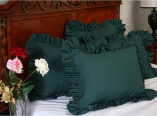 Product Description Give your bed a finished look with our solid ruffled pillow shams. We have a super selection of colors to match any bedroom decor. Available in Std, Queen King. Poly/cotton. Machine washable. 0
