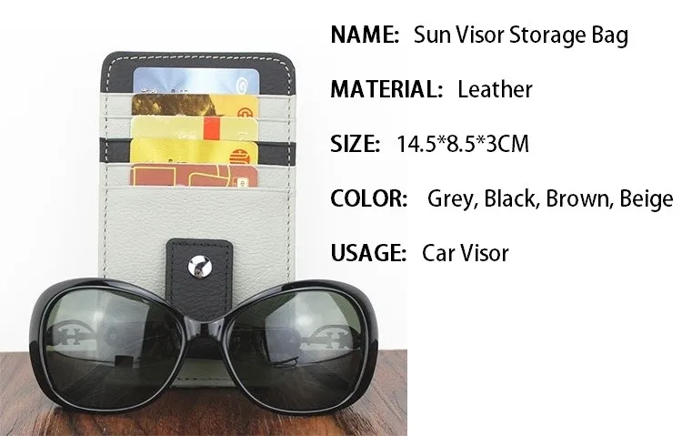Product Name:Car Sun Visor Cards Pen Sunglasses Leather Storage Bag Pen Card Pocket