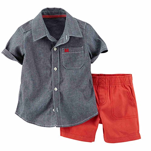-. Title : Carters Infant & Toddler Boys 2P Denim Chambray Button Up T-Shirt Red Shorts