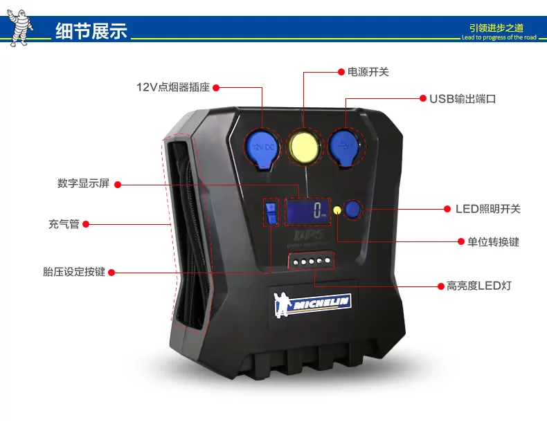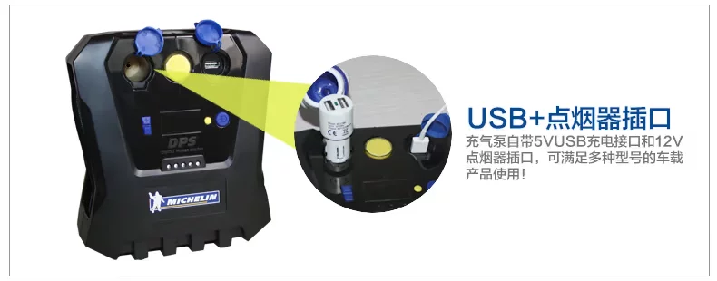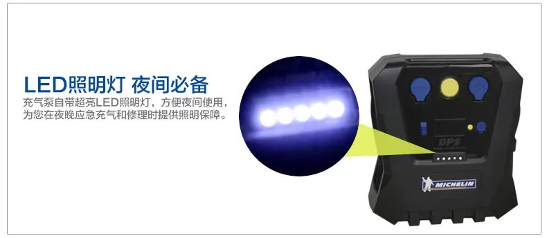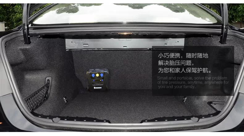 Versatile 6-in-1 digital preset tire inflator, tire pressure preset full automatic stop, dual turbo fan cooling, high-definition degree tire gauge, independent switch bright LED lights, cigarette lighter power jack, charging device with inflatable mouth closing line positions! Driving by car essential prerequisite