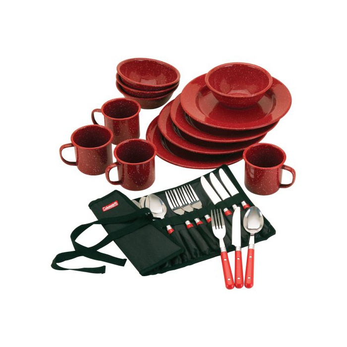 Coleman Speckled Enamelware 테이블 웨어 세트 Dining Kit (Red)