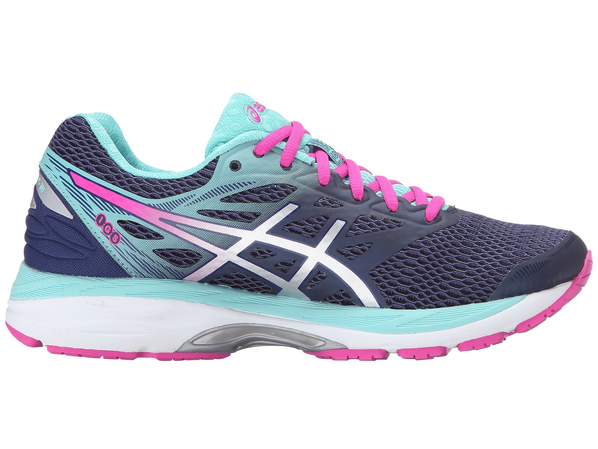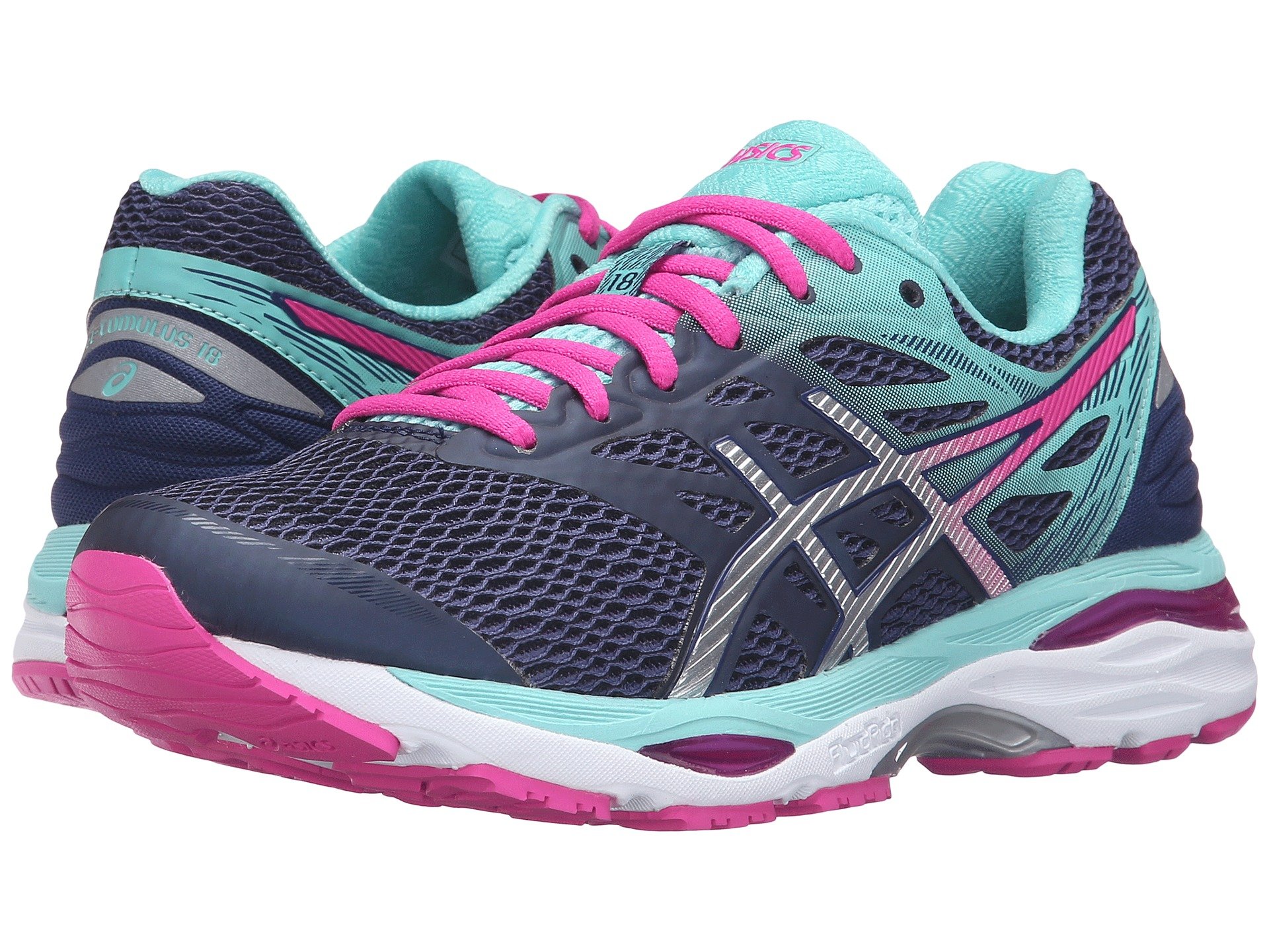 | Product Information SKU: #8697720Celebrate 18 years of dynamic, cushioned comfort by taking a ride in the ASICS? Gel-Cumulus? 18 running shoe!Successor to the Gel-Cumulus 17.Support Type: Neutral.Cushioning: High energizing cushioning.Surface: Road.Differential: 10 mm.Fit Tip: Per the brand, we recommend ordering a half size larger than your usual size.Breathable mesh and synthetic upper materials. Seamless upper construction reduces the likelihood of friction-related irritation.Lace-up closure.Discrete eyelets disburse lace tension for optimal comfort. Padded tongue and collar. Soft textile lining. Removable ComforDry™ sockliner features anti-odor properties for a cooler, drier in-shoe feel. FluidRide™ midsole provides just the right balance of bounce back, cushioning, and lasting wear in a lightweight package.I.G.S? (Impact Guidance System) employs linked componentry to enhance the foot's natural gait from heel strike through toe-off.Rearfoot and Forefoot Gel? systems work together to reduce impacting shock and allow movement in multiple planes from heel strike through toe-off.Heel/Toe: 23 mm/13 mm.DURASPONGE? rubber outsole for greater cushioning and durability in the forefoot.Guidance Trusstic System? integrates Guidance Line? for heightened stride efficiency that doesn't interfere with mid-foot structural integrity. Guidance Line vertical flex groove decouples the tooling along the line of progression for a smoother ride.Imported. Weight of footwear is based on a single item, not a pair. |