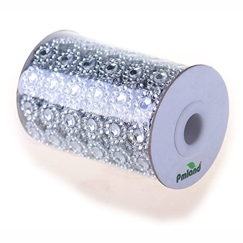 This listing is for 5 Ft of 4 inch Fancy Flower Diamond Mesh Ribbon. The ribbon has 6 rows along the width. It can be cut with scissors to any shape you desire. There are no stones in diamond mesh wrap. The indentation gives the appearance of a rhinestone.