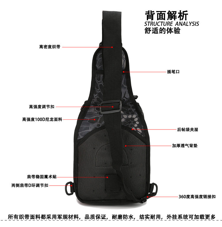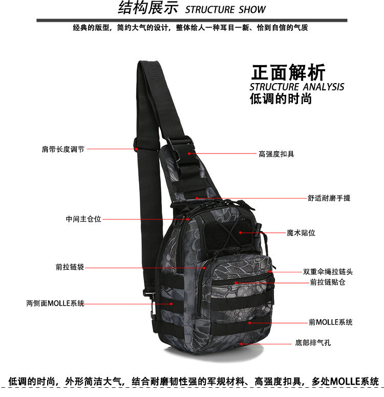 Size: Small Suitable for: youth Style: chest bag Texture: canvas Pick up parts type: Soft handle Closed way: zipper Internal structure: zipper pocket bag pocket Document bag sandwich zipper bag popular elements: Camouflage pattern: Camouflage Color classification: ACU CP Jungle camouflage jungle digital python pattern black muddy desert digital sand three black military green Is there a mezzanine: yes Bags hardness: soft Whether it can be folded: yes Condition: New Applicable scene: Sports Brand: other / Other Item: B14 style: Style: Single Lining Material: Polyester
