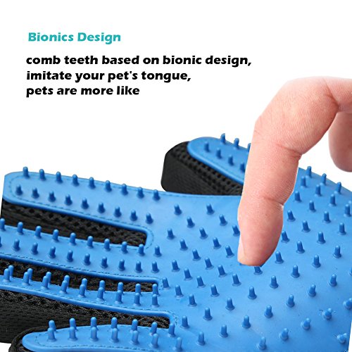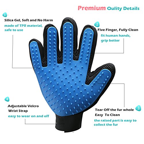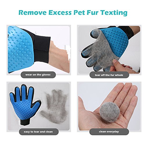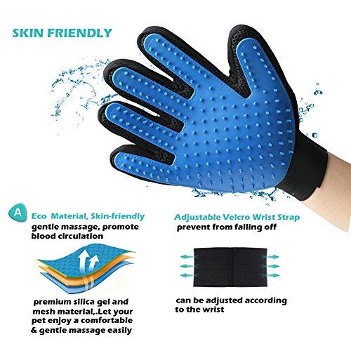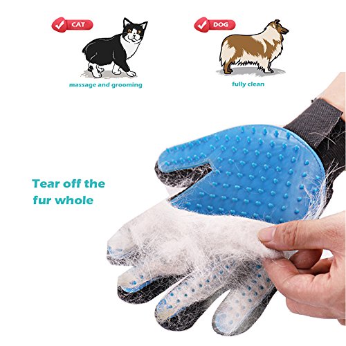 Pet Massage Glove: Soft and supple silicone mimics made pet grooming gloves allow you to brush away dirt, dander and loose hair from long, short and curly haired dogs, cats, and other pets, grooming the hair quickly, gently and effectively without hurting their soft skin.