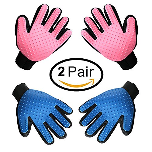 Pet Grooming Glove Mitt, 4 Pair Pet Deshedding Glove Hair Remover Tool, Gentle Pet Massager Brush with Enhanced Five Finger Design, Perfect Pet Products for Dog Cat with Long & Short Fur(Blue & Pink)Weight: 0.55lb