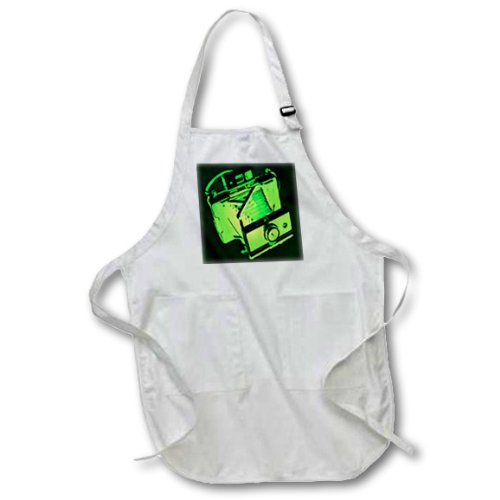 3dRose apr_20713_4 Picture of a Old Vintage Classic Lyme Green Camera with Bellows Full Length Apron with Pockets, 22 by 30-Inch, Black