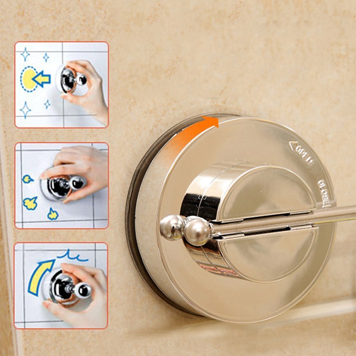 Attach the rack to the groove of the suction cup, press firmly on the wall and turn the handle to the right to fix it.