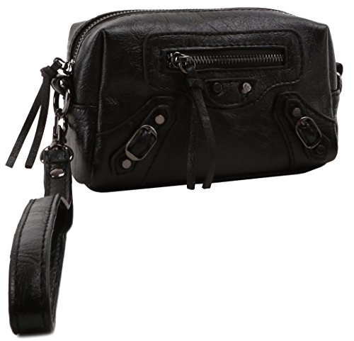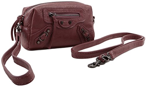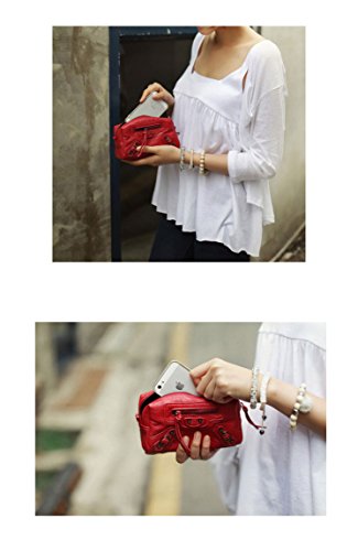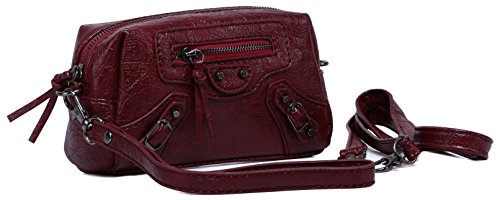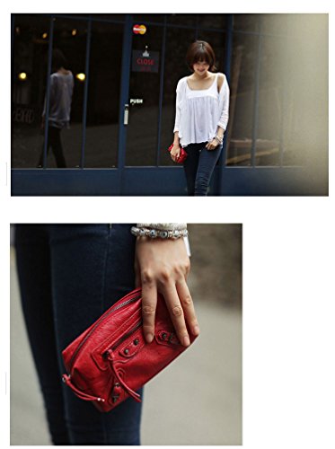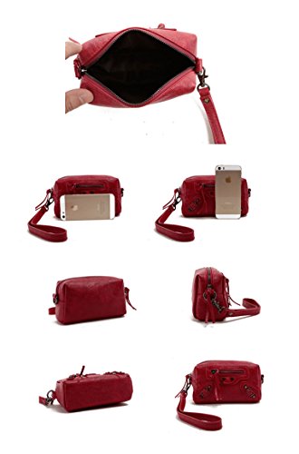 -. Brand : Borgasets -. Color : red -. Department : womens -. Feature : * Material: Imported high quality PU / * Dimensions: side height 3.93 Inch, side width 1.96 Inch, bottom length 6.29 Inch, strap length 45.2 Inch / * Features: positive 1 zipper bag; the motorcycle clutch, you can put cell phones / * Made in China -. ProductGroup : Shoes -. ProductTypeName : HANDBAG -. Title : Borgasets Women's Wristlet Handbags Zipper Arround Motorcycle Clutch Mobile Phone Purse Case Handbag with Wrist Strap