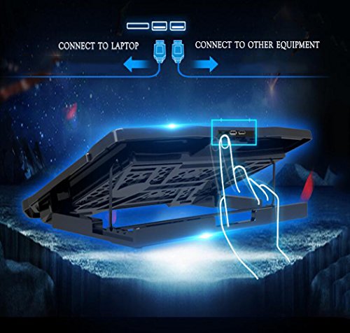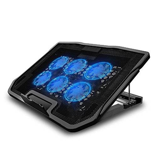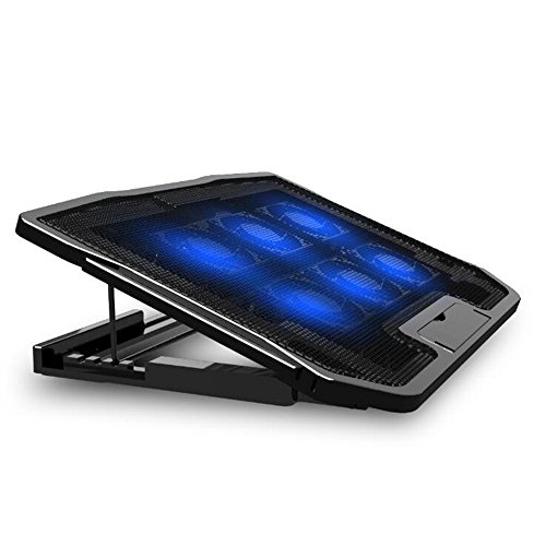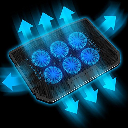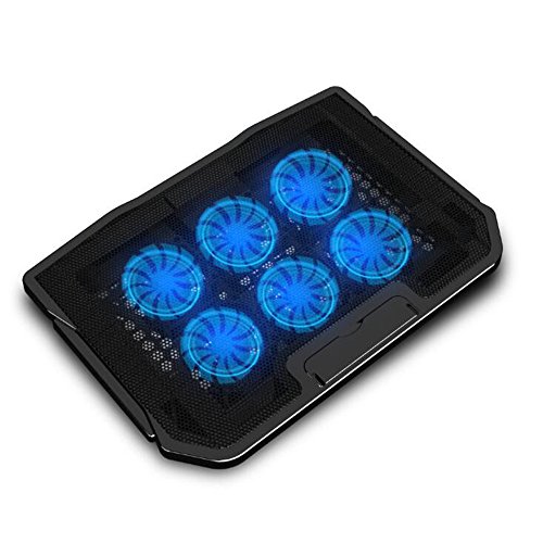 -. Feature : Ultra Quiet 6 built-in fans: allow for maximum airflow and cooling while you work or play. Each fan is 70mm and spin at over 2,400 RPM air flow. / The blue lights add to the aesthetics of the cooler and will catch your eyes in no time. / 2 USB Interface: at the top of the middle cooling pad set two Gold-plated USB interface, at the bottom of the design adopted the anti-skid pads, surface increase LCD display speed, easy to use and safe / Application: camping, travel, office, home and other rest. Ergonomics Design: 5 adjustment levels,unique design of tilt scheduling and comfortable elevation for notebook radiator. Support 10-15.6 inch notebook. Ultra-Portable: slim,portable,and light weight (about 1kg net weight), allowing you to protect your PC wherever you go. / Package Includes: 1 x laptop cooling pad,1 x USB cable.