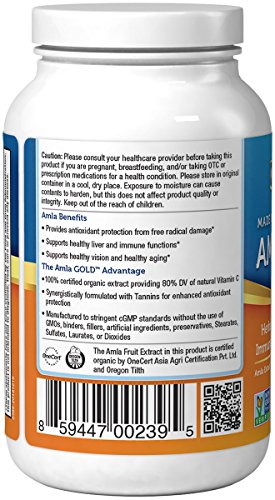 -. Feature : The Gold Standard in pure Amla Extract / Powerful Antioxidant with ORAC value greater than Acai, Pomegranate, Cranberry and Blueberry combined / Highest percentage of Tannins (50%) and beta-glucocallin (10%) / Rich, natural source of Vitamin C / Key Health Benefits: Supports healthy immune, digestion, glucose, and liver detox*