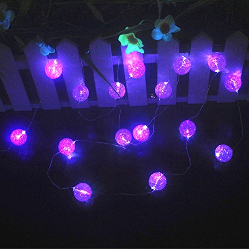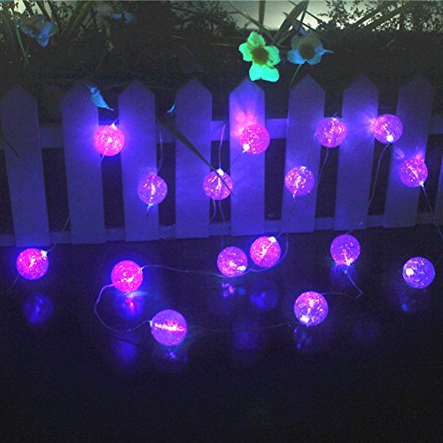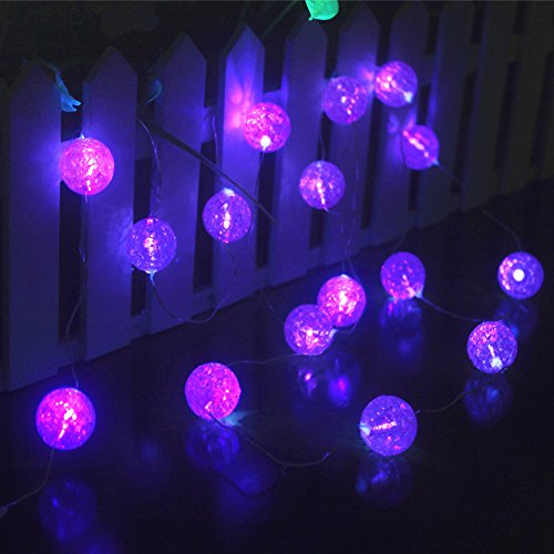 Ryham Battery Operated Crystal Ball String Lights Beaded Curtain Lights 16 LED 7.38ft 2.25M Fairy Globe Bubble Decor Lighting for Outdoor Indoor Patio Party Curtain Bedroom,Purple