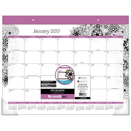 -. Title : AT-A-GLANCE Desk Pad Calendar 2017, Monthly, 21-3/4 x 17", FloraDoodle, Color Selected For You May Vary (D189-704)