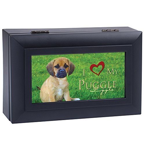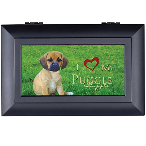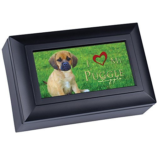 Love My Puggle Cottage Garden Matte Black Finish Petite Jewelry Music Box - Plays Song Wonderful World