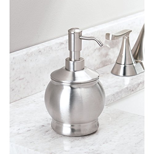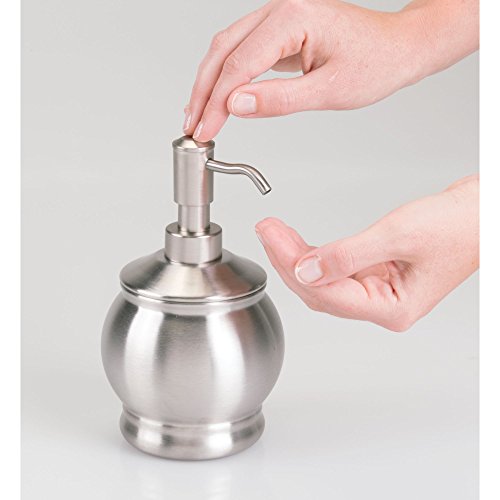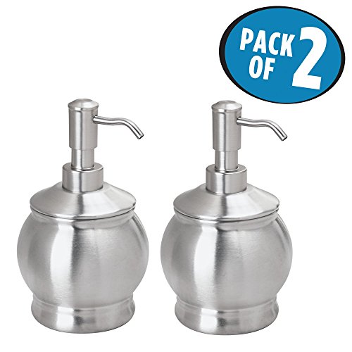 mDesign Liquid Hand Soap Dispenser Pump Bottle for Kitchen, Bathroom | Also Can be Used for Hand Lotion & Essential Oils - Pack of 2, Round, Nickel/Stainless Steel