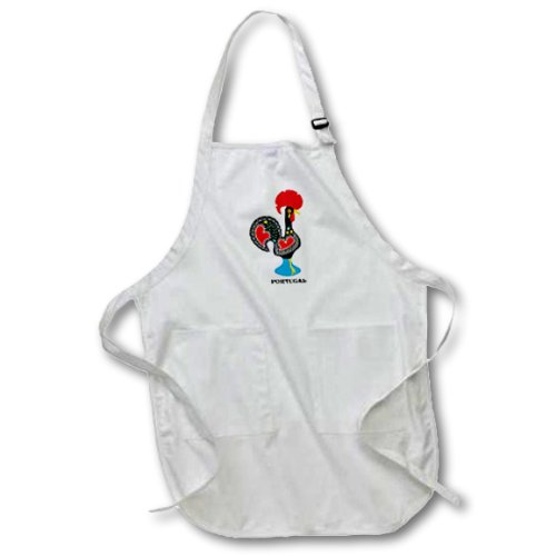 3dRose The black Portuguese Rooster or Galo De Barcelos-Full Length Apron, White with Pockets (apr_160659_1), 22 by 30"