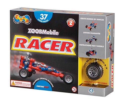 -. Feature : 37 ZOOB pieces to make ZOOB Racer go / Create a Mach 5 Racecar or have an outer space adventure with a Lunar Explorer / Works with every other ZOOB set so and kids can use their imaginations and create their own vehicles / Includes ZOOB pieces in unique racing colors, 4 wheels with tires that work like gears and 2 instruction guides / Recommended for children 6 years of age and older