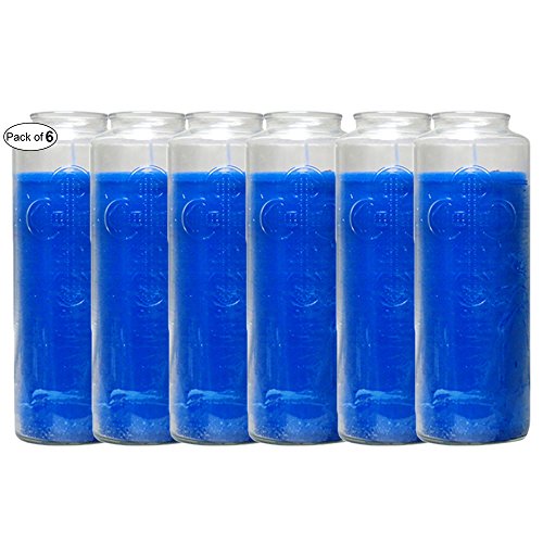 (Prayer ®)/Furniture Decor/Home Decor/DIRECT FROM USA/Glass Candle Solid Blue With Cross Sign (Pack of 6)