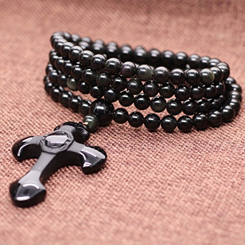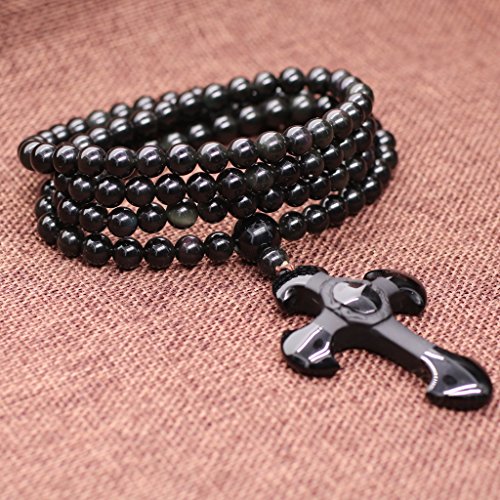 金属の素材:8mmオブシディアン 非弾力ナイロン