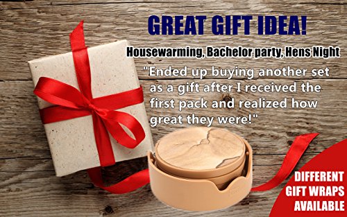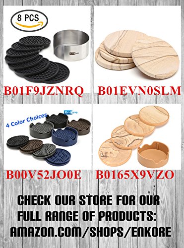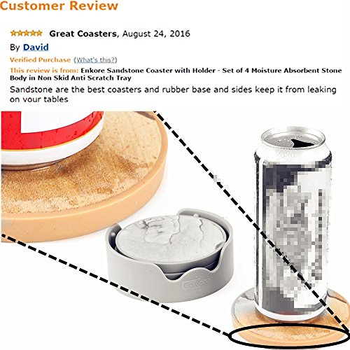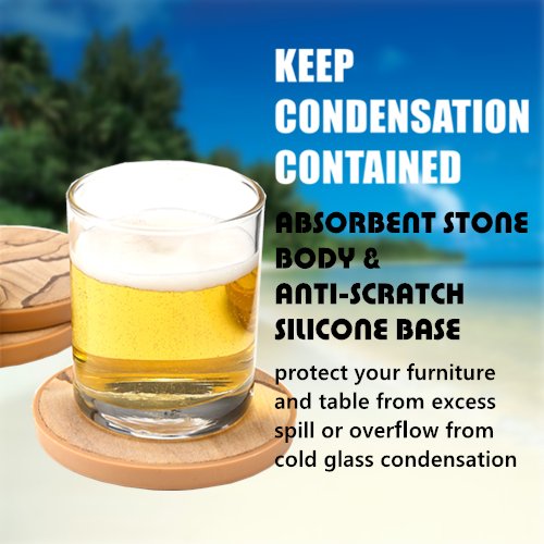 - TWO TIMES BETTER PROTECTION - Sand-stone has excellent absorbability in nature which will absorb a large amount of condensation from a cold drink. Excess liquid will be contained by the silicone rim so that spill will not drip off or leak onto your countertop. This innovation combines the absorbing power of the sand-stone and the containing power of silicone rubber, which makes it much better than the old fashion thirsty-stone. Ideal for beverage, whiskey, cocktail, beer or alcohol