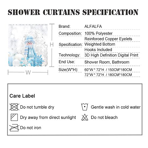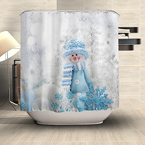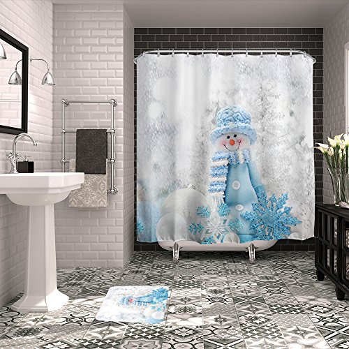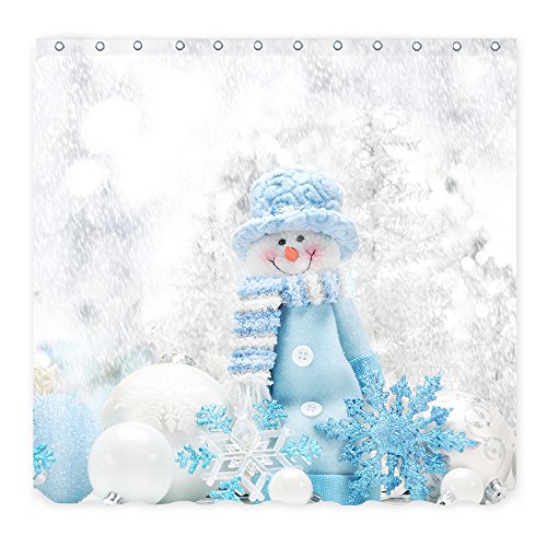 ALFALFA Merry Christmas Home Decor Polyester Fabric Bathroom Shower Curtain 60"W x 72"H (150CM x 180CM) - Blue Hat Snowman