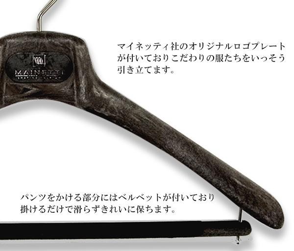 メンズのスーツ、ジャケットに最適なハンガー。人体工学に基づき設計されており、洋服をバランスよく美しく掛けることができます。パンツを掛けるバーにはベルベットが付いており、掛けるだけで滑らずきれいに保ちます。 |