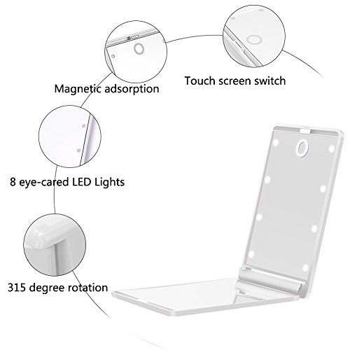 Its unique design includes 8 built-in LED lights, giving you the option of doing your make up in low light if needed.