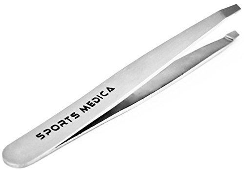 Silver Slant Tip Sports Medica Tweezers Women & Men - Medical and Premium Quality Stainless Steel Tweezers with Sharp Precision Tip - Pluck Eyebrows and...