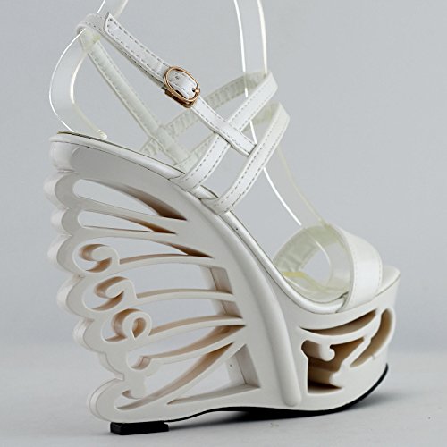 Show Story Sexy Strappy Bride Wedding Wedge Butterfly Heel Sandals Shoes,LF51801