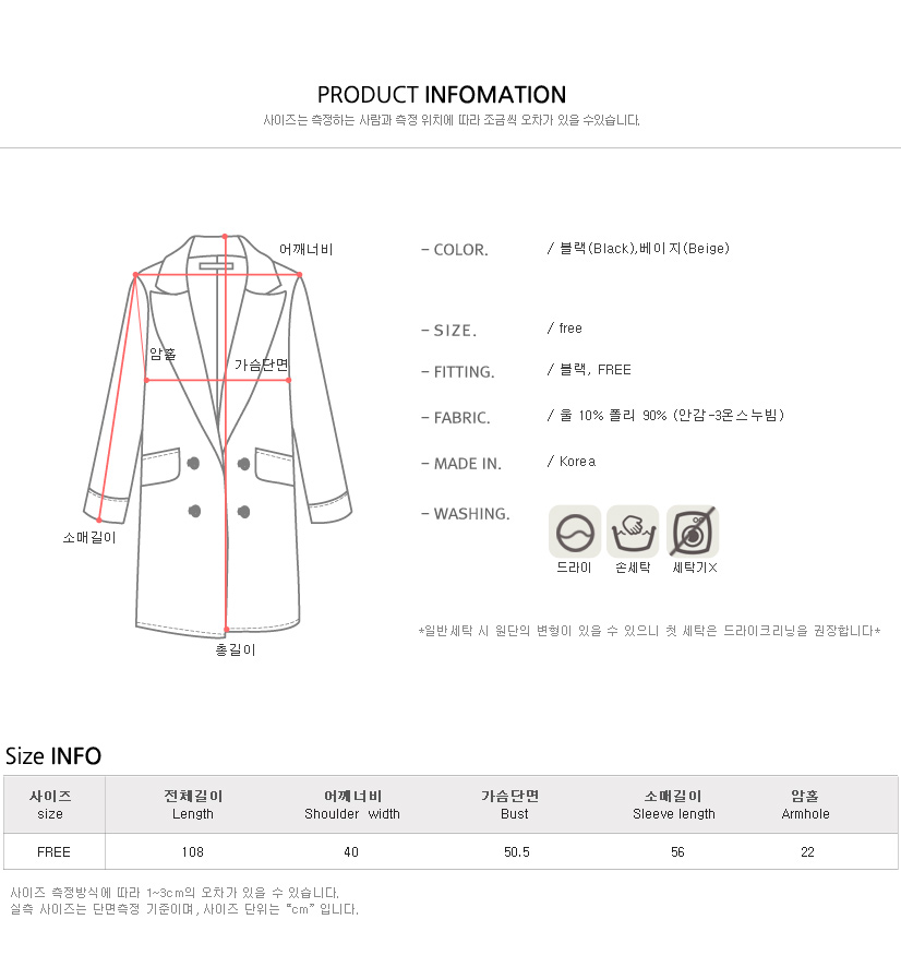 일자로 툭 떨어지는 세련된 핏으로 고급스럽구요~