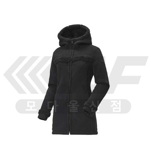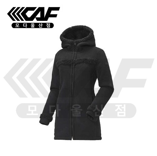 힙을 덮는 롱 기장 형태의 여성용 니트 자켓원단 안쪽면에 보아털이 부착되어 있어 가볍고 보온성이 뛰어남.후디드 스타일과 퍼 트리밍 포인트로 귀엽고 캐주얼하게 착장 가능한 아이템.?